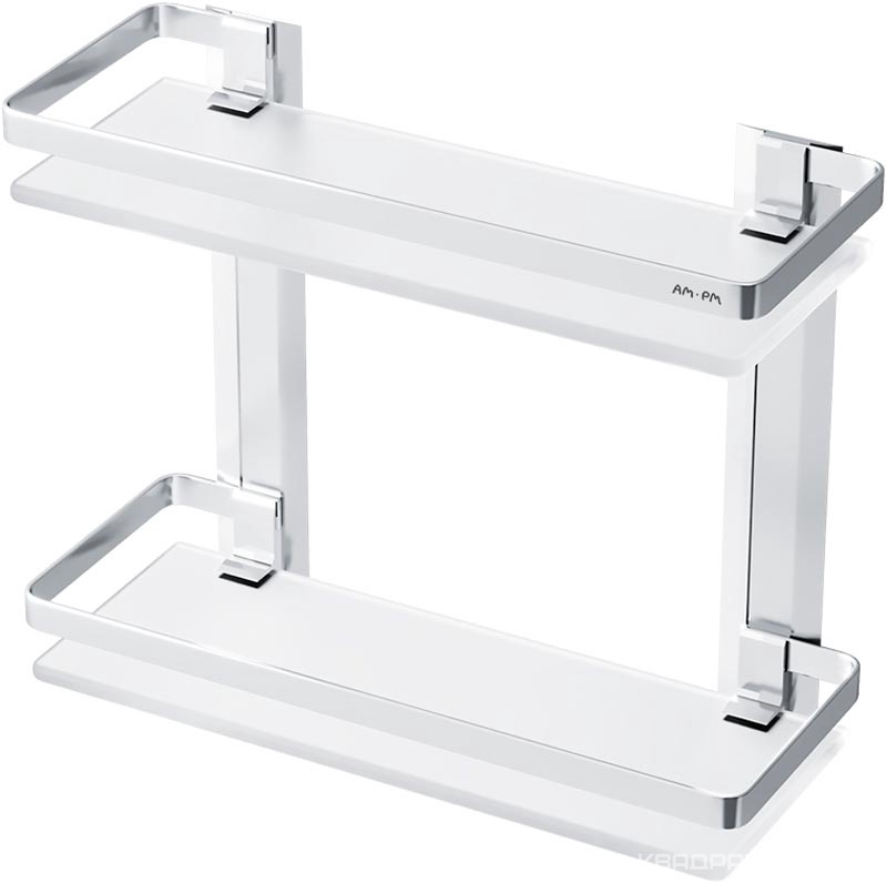 Полка для ванны душа двухуровневая стеклянная, алюминий, ZZ