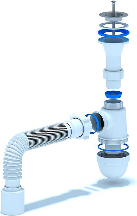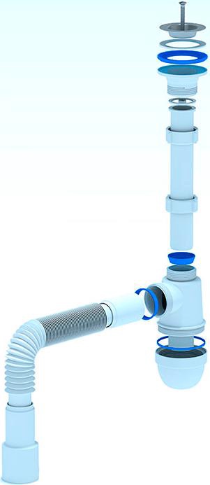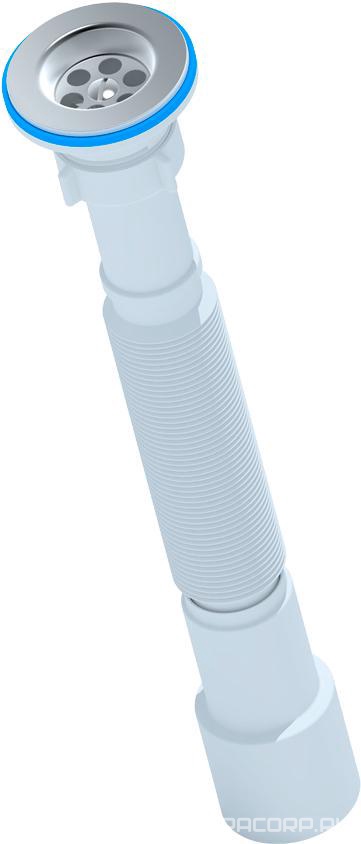 Сифон для ванны click/clack, плоский, с переливом и сеткой, гофра в компл.В наличии