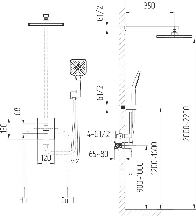 Душевой комплект для душа, встраиваемый, верхний и ручной душ, внутрен. часть в компл., смеситель без излива, цв. хром, ZZПод заказ