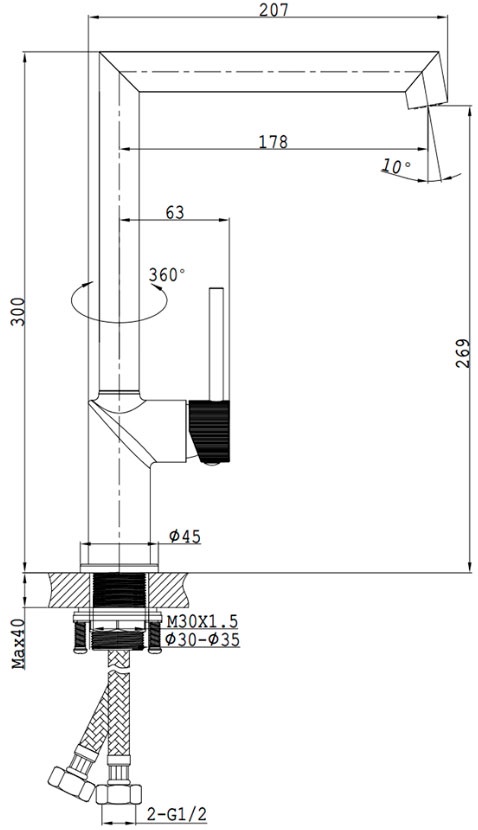 Смеситель для ванны/душа, однорычажный, с душевым гарнитуром, цв. оружейная стальВ наличии