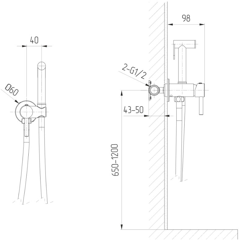 Комплект гигиенического душа (смеситель с внешней и встраив.частью, лейка, шланг), цв.оружейная стальВ наличии