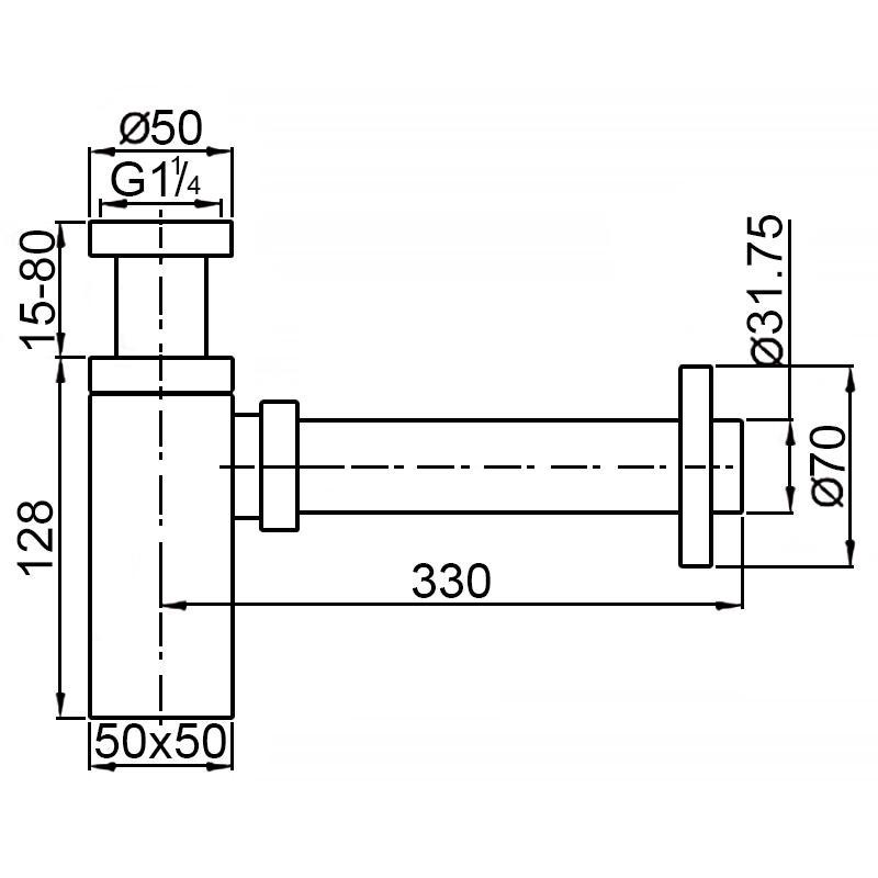 Сифон для раковины 1*1/4, квадратный, без донного клапана, цв. хром