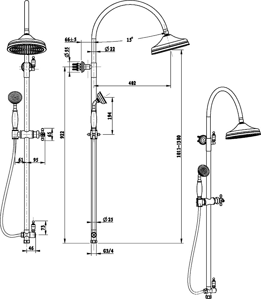 Смеситель для душа Medici, однорычажный, без душевого гарнитура, бронза ZZПод заказ