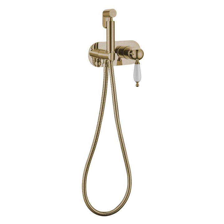 Комплект гигиенического душа (смеситель с внешней и встраив.частью, лейка, шланг, держатель лейки), цв.бронза ZZПод заказ