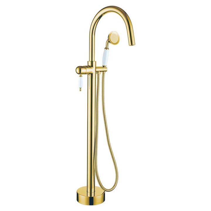 Смеситель для ванны, напольный, однорычажный, с душевым гарнитуром, цв.золото ZZПод заказ