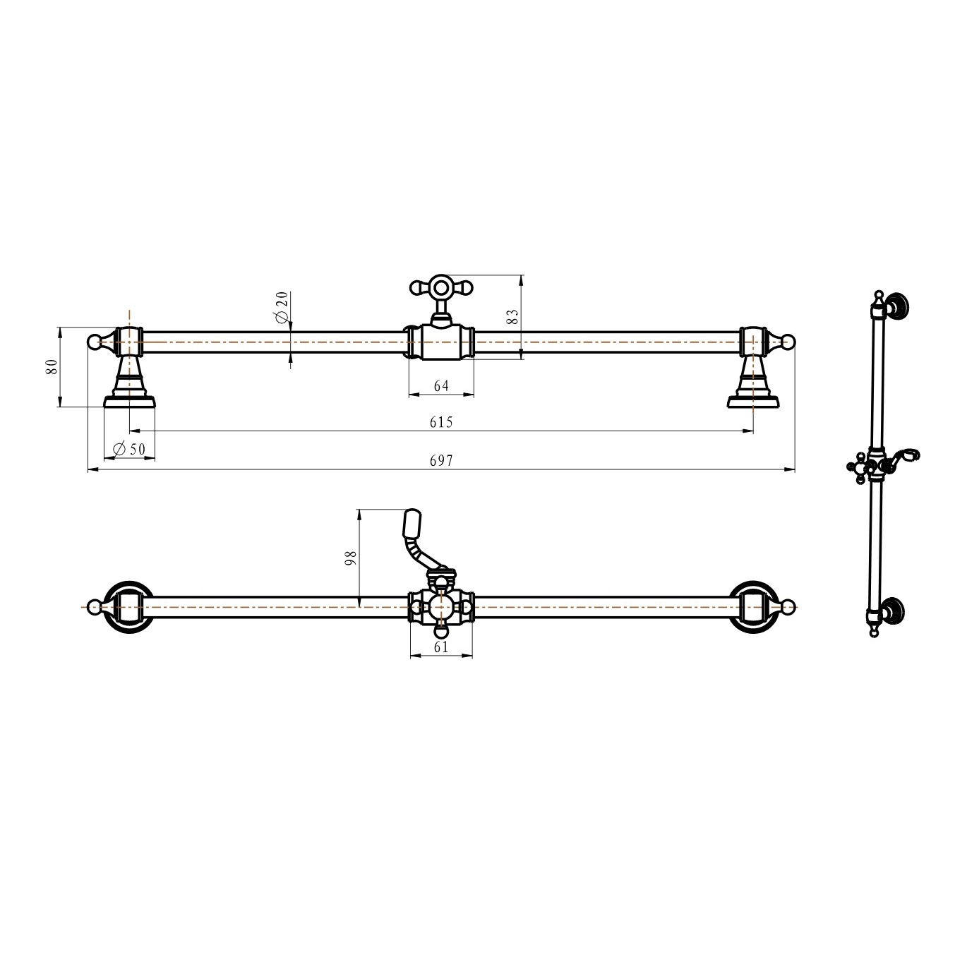 Смеситель для ванны Medici Ripresa, однорычажный, с душевым гарнитуром, бронза ZZПод заказ