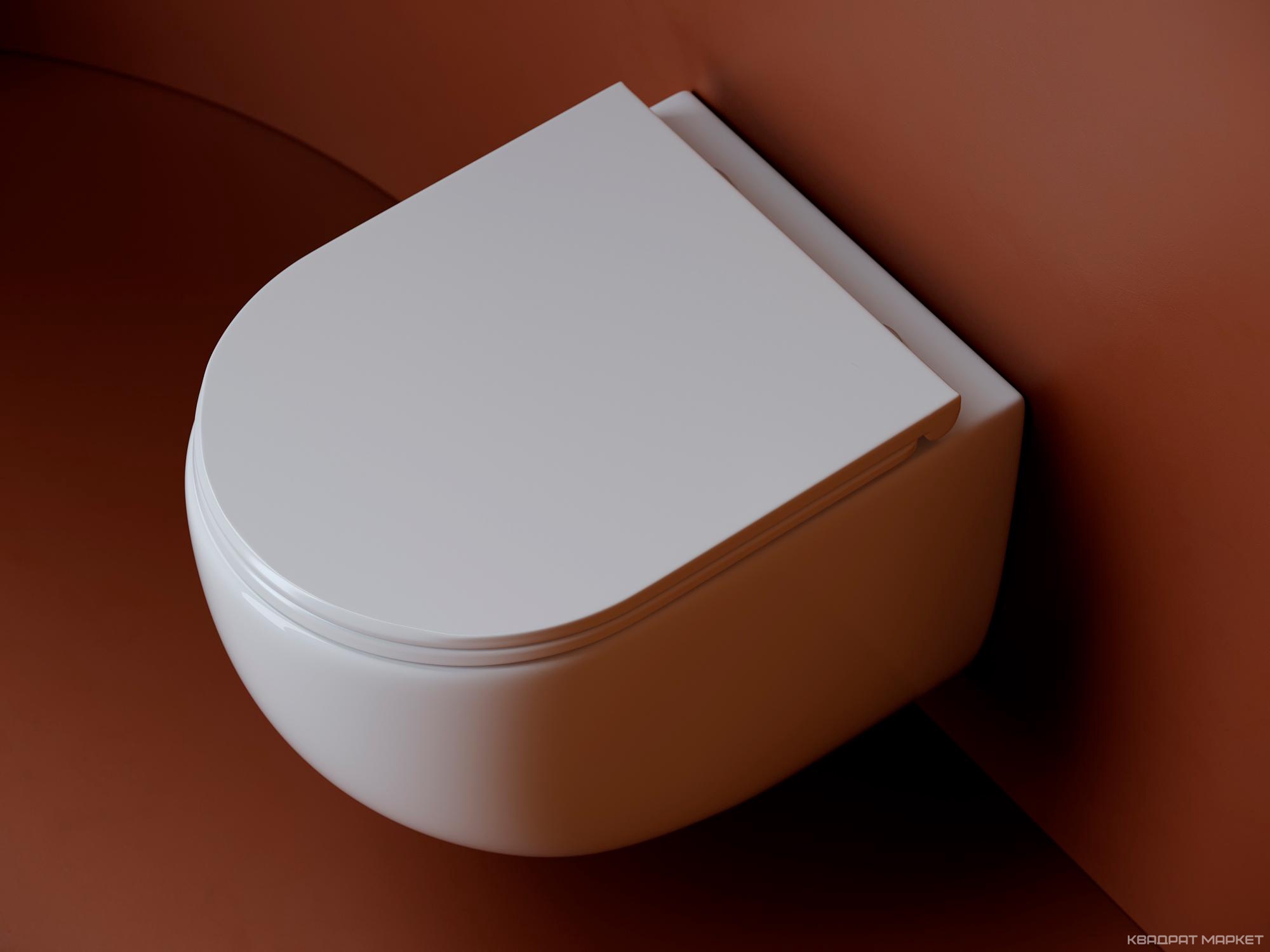 Унитаз подвесной, безободковый, смыв Торнадо, тонкая крышка-сиденье микролифт в комплекте, белый