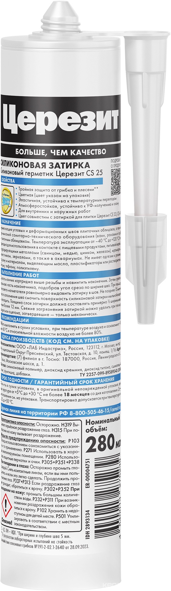 Эластичная силиконовая затирка CS 25, серебристо-серый (04) 280мл.