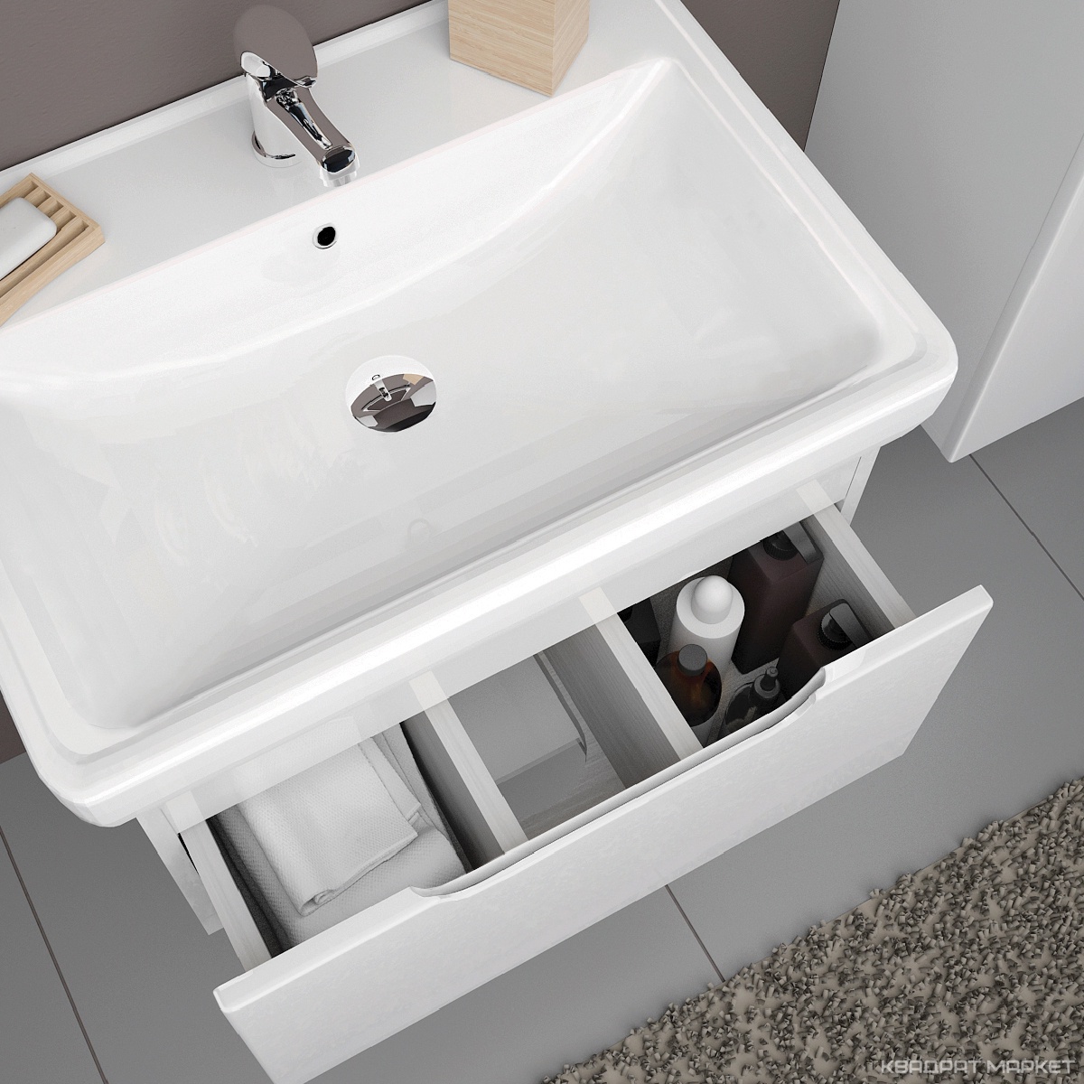 Тумба универсальная (напольная/подвесная) "Tiny"-60, 1 ящик, БЕЗ раковины, цв.белый ZZПод заказ