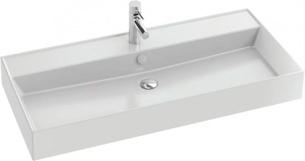 Раковина подвесная/накладная, 101*46 см, без донного клапана, встроенный слив-перелив, цв.белый ZZПод заказ