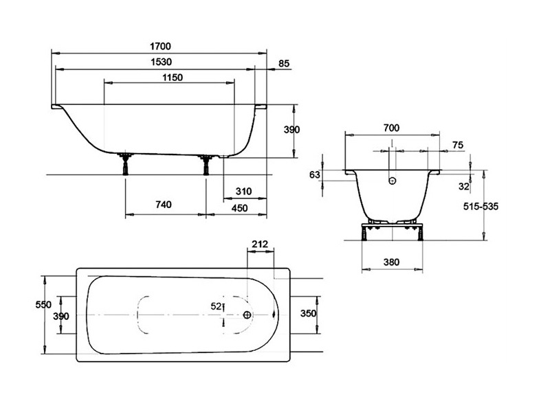Ванна Kaldewei 170х70 стальная без ножек