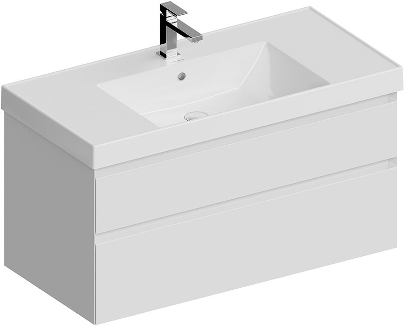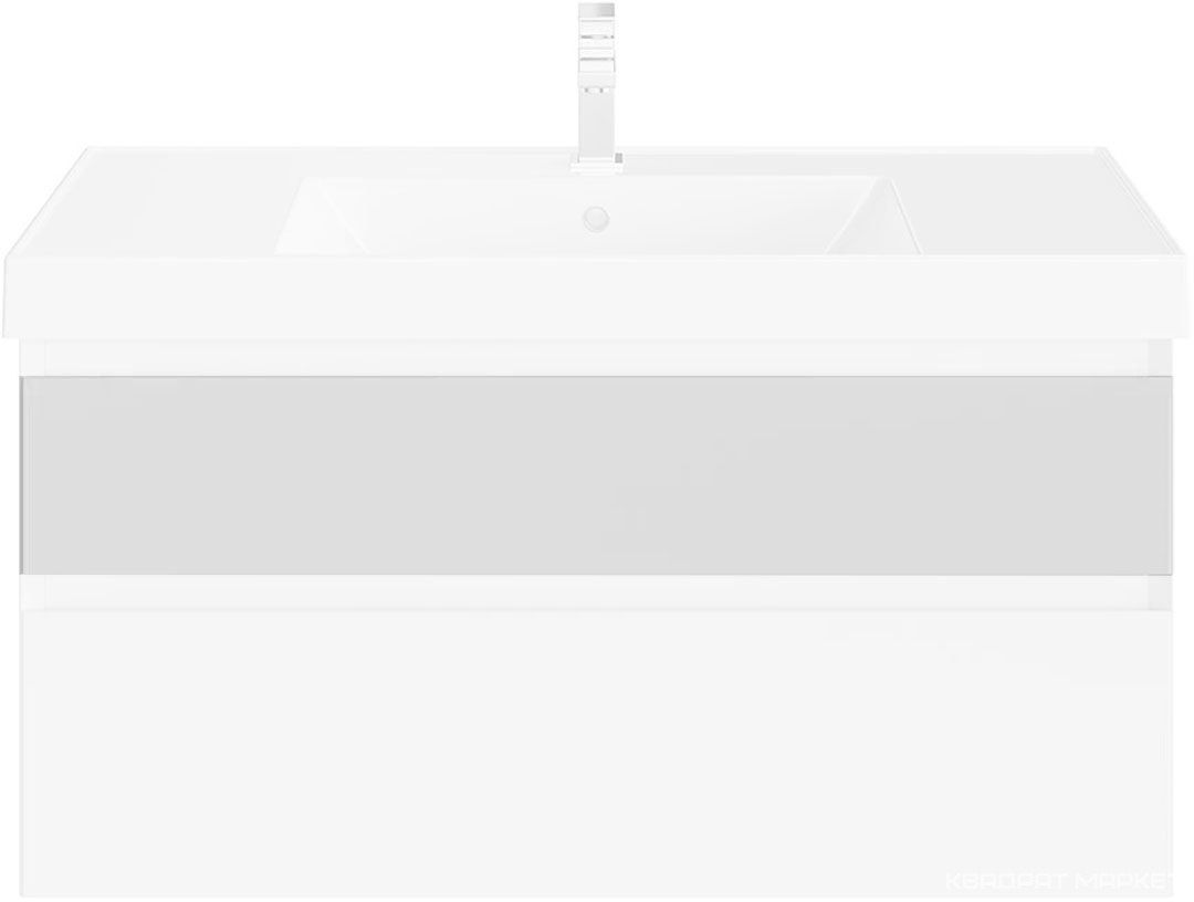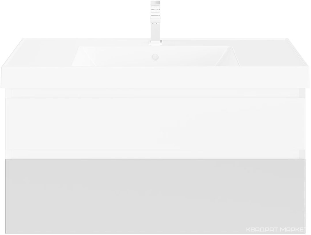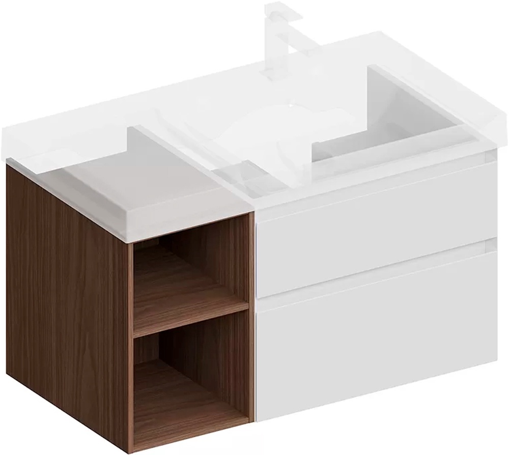 Тумба подвесная 90 см, правая, 2 выдвижных ящика + полки, без раковины, цв.белый матовый/орехВ наличии