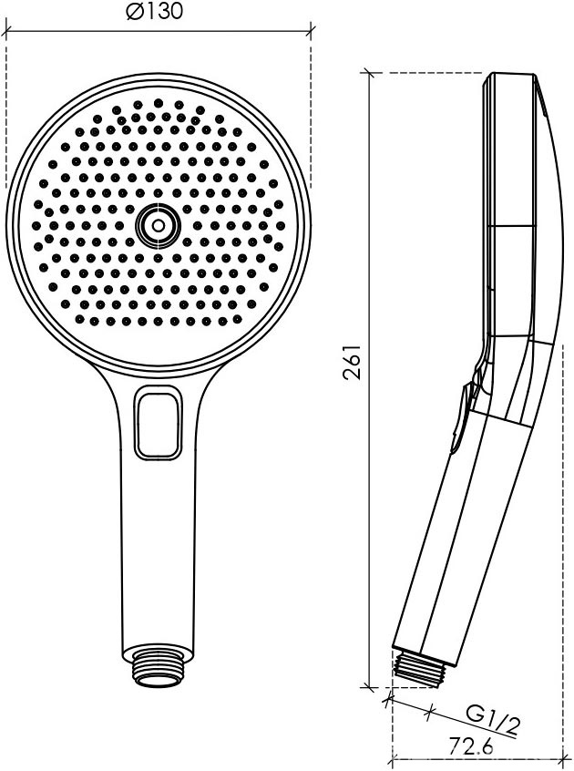 Душевая лейка, кнопочное управление, 130 мм, 3 режима, цвет хром/белыйВ наличии