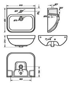 Раковина "Next Luxe" 600*450, с хром. кронштейном и полотенцедержателем XXРаспродажа