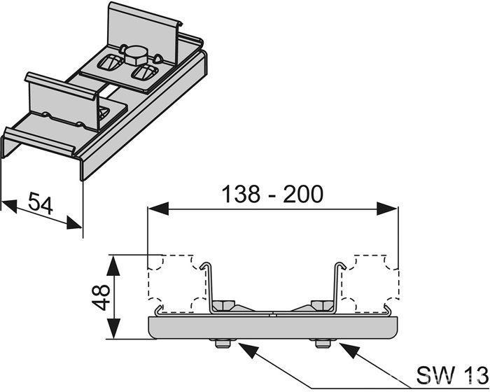 Крепление одинарное (кронштейн, анкер, дюбель) для сборки профилей, (оцинкованная сталь), TECEprofilВ наличии