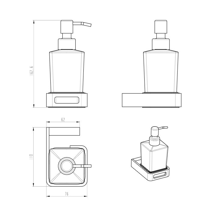 Дозатор жидкого мыла UNO Gold, подвесной, крепеж в комплекте, цв. зоолото ZZПод заказ