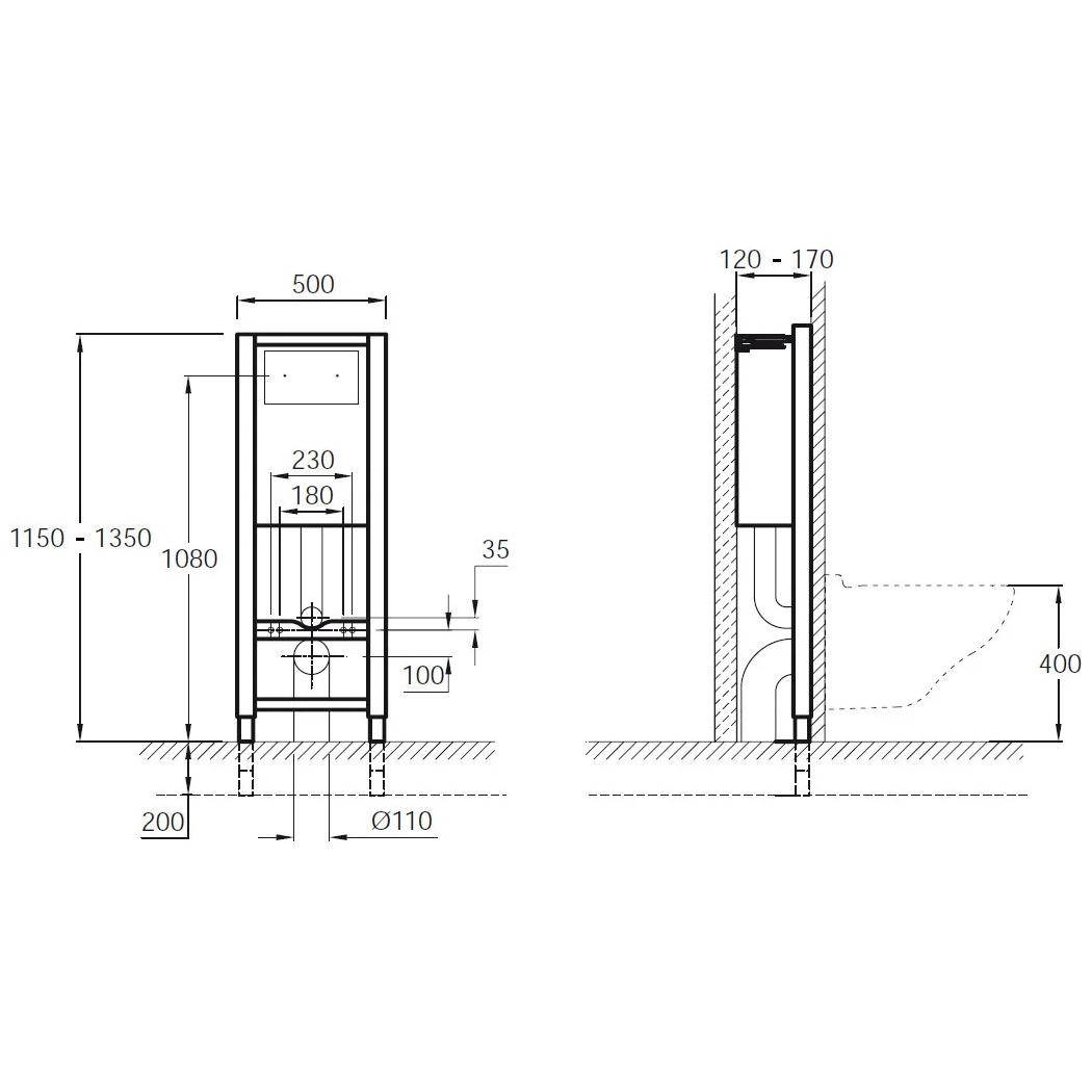 Инсталляция для подвесного унитаза на 3/6 литра, БЕЗ кнопки, крепеж в комплекте ZZПод заказ