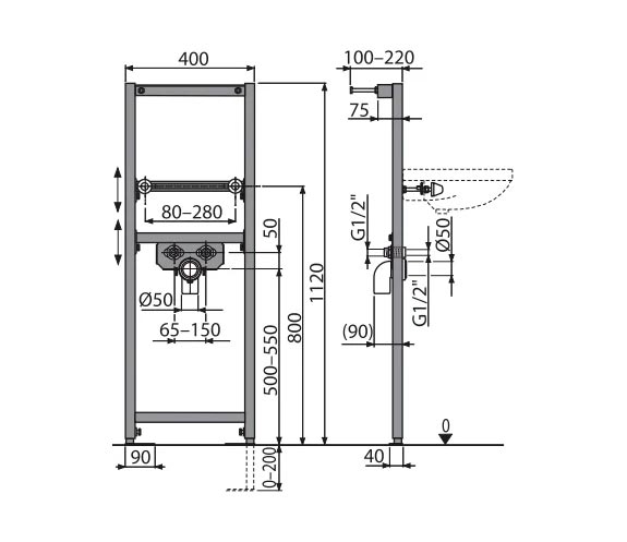 Инсталляция для раковины, крепежи в комплекте ZZ