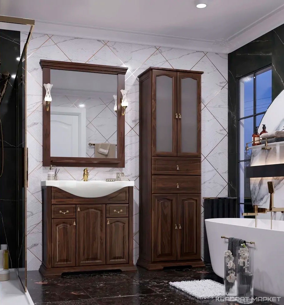 Тумба напольная Риспекто 80, 822/900/480 мм, цв. орех антикварный (Нагал, Р46), БЕЗ раковины Kirovit Классик 80, ZZПод заказ