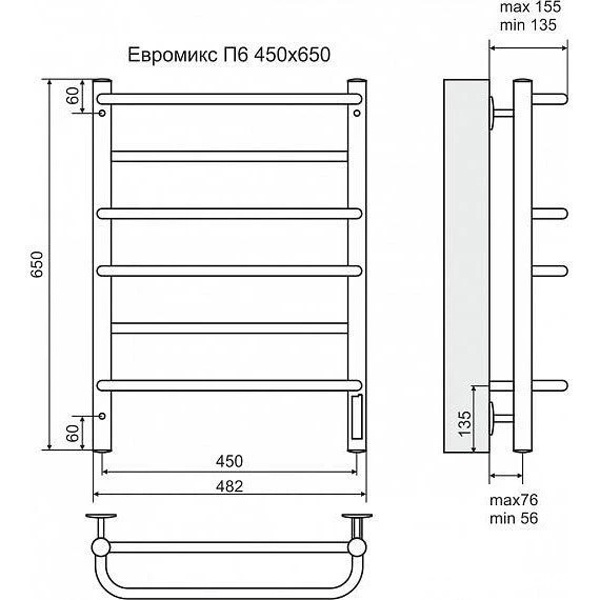 Полотенцесушитель электрический "Евромикс" 450х650 (625*450) мм, ,поворотный терморегулятор, установочный набор в комплекте П6 XXРаспродажа