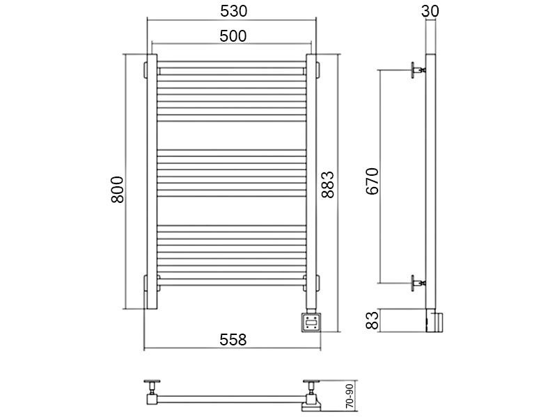Полотенцесушитель "Модус" 500*800 мм, электрический, пульт управления слева, в комплекте 4 телескоп.кроншт. ZZПод заказ