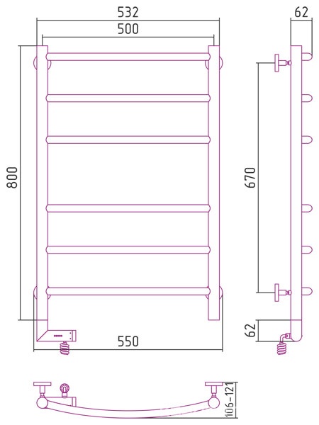 Полотенцесушитель электрический "Классик" 850*500 мм, терморегулятор, установочный набор в комплекте, П8 (подключение справа)В наличии
