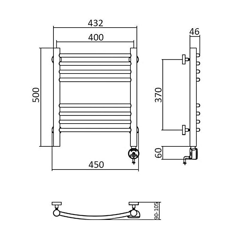 Полотенцесушитель электрический "Классик" 450x550/П5 мм, встроенный терморегулятор, установочный набор в комплекте XXРаспродажа
