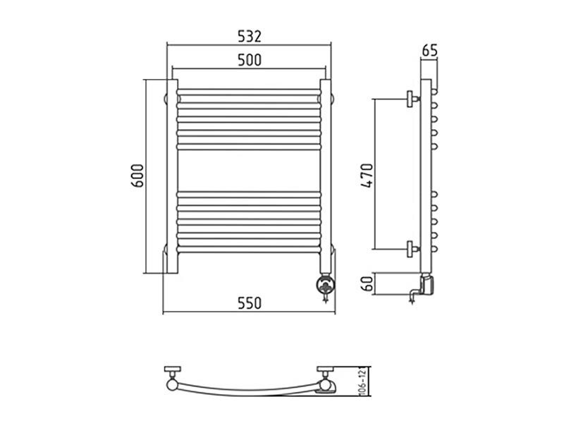 Полотенцесушитель "Элегия" 600x500 мм, электрический, пульт управления справа, в комплекте 4 телескоп.кроншт. ZZПод заказ