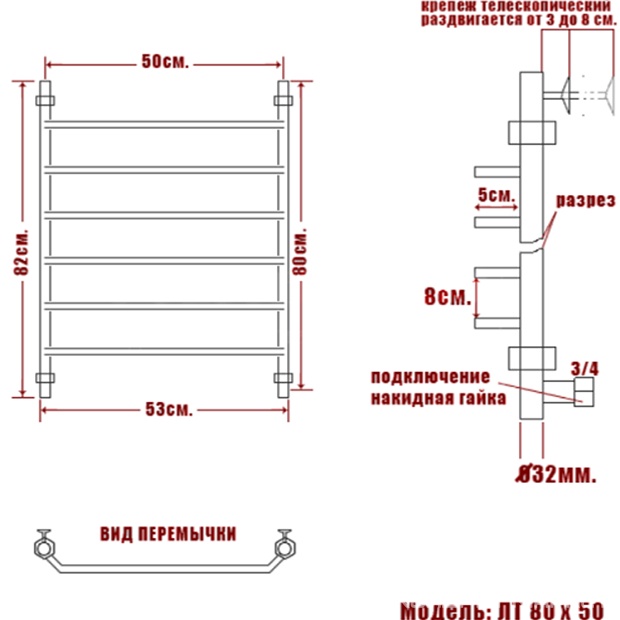 Terminus Евромикс Полотенцесушитель "" П8 500х800 мм, установочный набор в компл., БЕЗ уголков и отражателей ZZ n092546