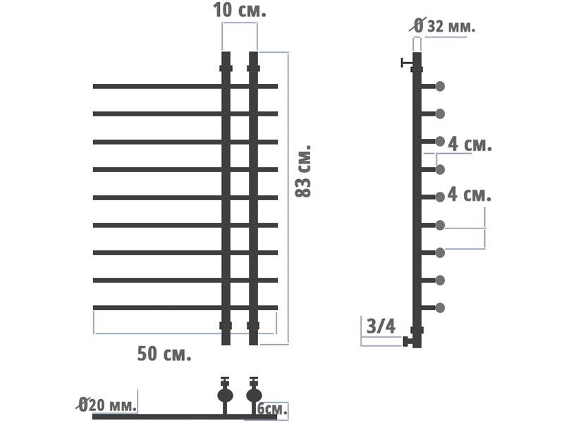 Полотенцесушитель "Евромикс" П8 500х800 мм, установочный набор в компл., БЕЗ уголков  и отражателей ZZ