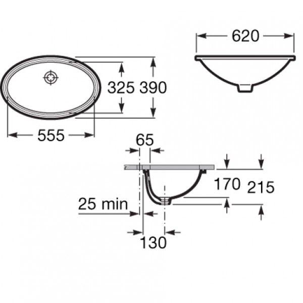 Раковина Grand Berna 62/55,5 см, встраиваемая снизу, с установочным комплектом, глазурованная с двух сторон ZZПод заказ