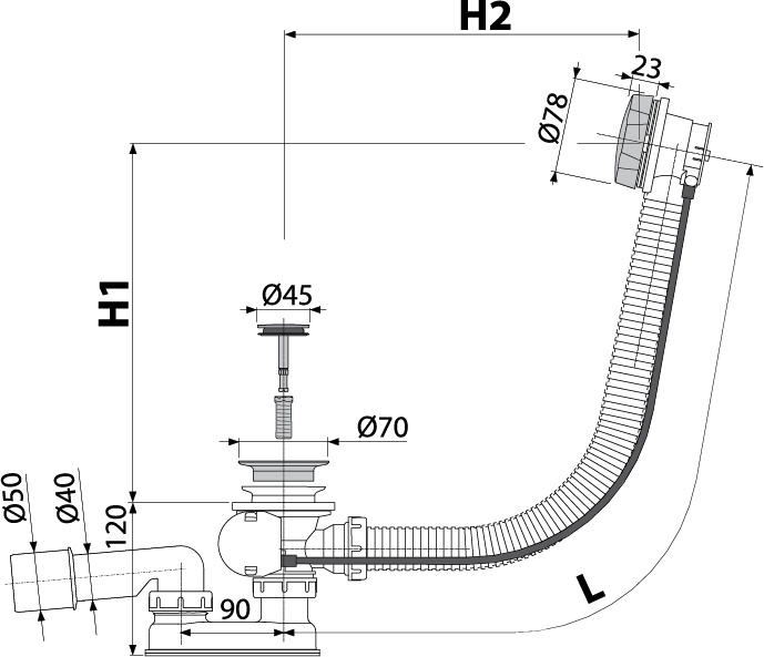 Слив-перелив (Сифон) для ванны автомат комплект металл под бронзу, ZZПод заказ