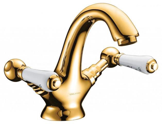 Смеситель для раковины Люмьер, БЕЗ донного клапана, с установочным комплектом, золото KLРаспродажа