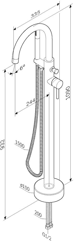 Смеситель для ванны/душа напольный Stillness, БЕЗ установочного комплекта, с аксессуарами, хром ZZПод заказ