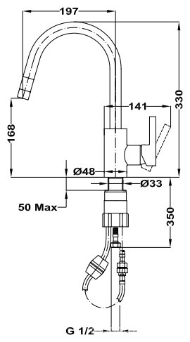 Смеситель для кухни с выдвижным изливом, гибкая подводка, БЕЗ донного клапана ZZПод заказ