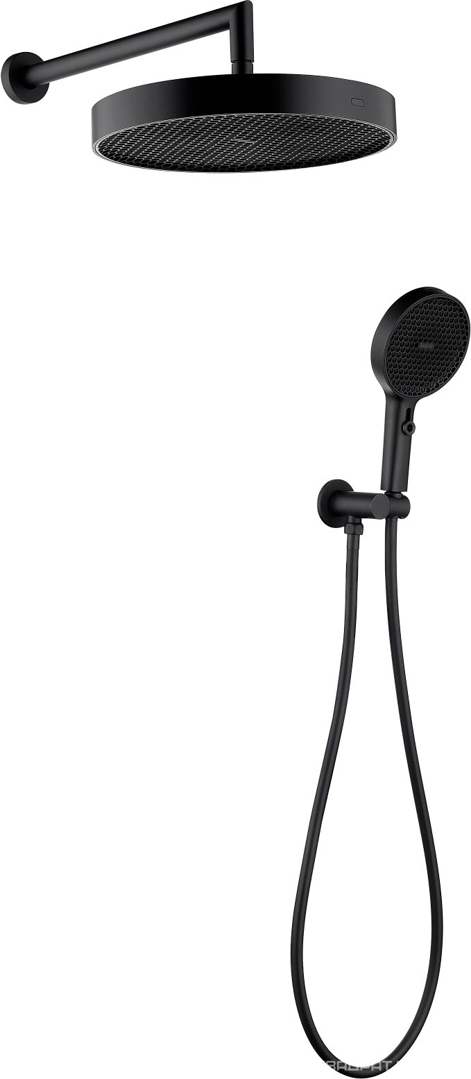 Встраиваемый дуушевой комплект : верхний душ, кронштейн, ручной душ, шланг + шланговое соединение, цв.черныйВ наличии
