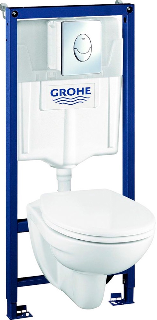 Комплект унитаза с инсталляцией Grohe Solido с сиденьем Микролифт с Белой клавишей смыва (белая) ZZПод заказ