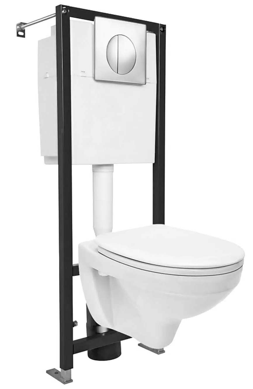 Подвесной унитаз с крышкой+инсталляция+кнопка (хром) для инсталляции KLРаспродажа