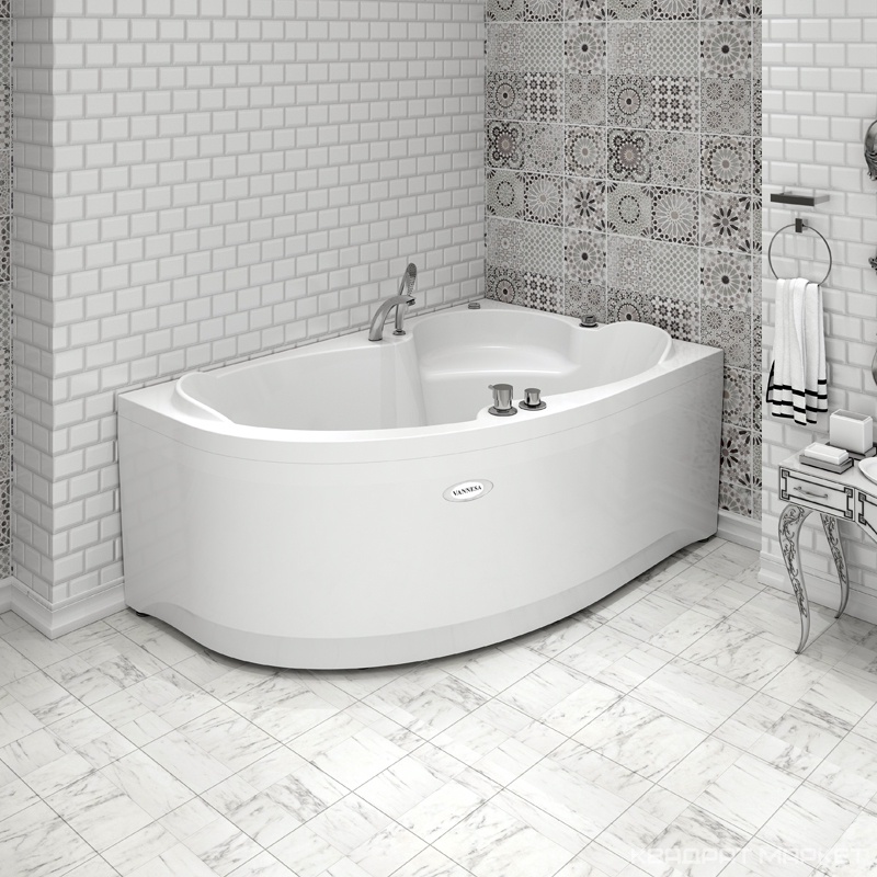 Ванна акриловая "Ливадия", 1600х1000 мм, правая, БЕЗ каркаса, слива-перелива и панели, белая ZZПод заказ