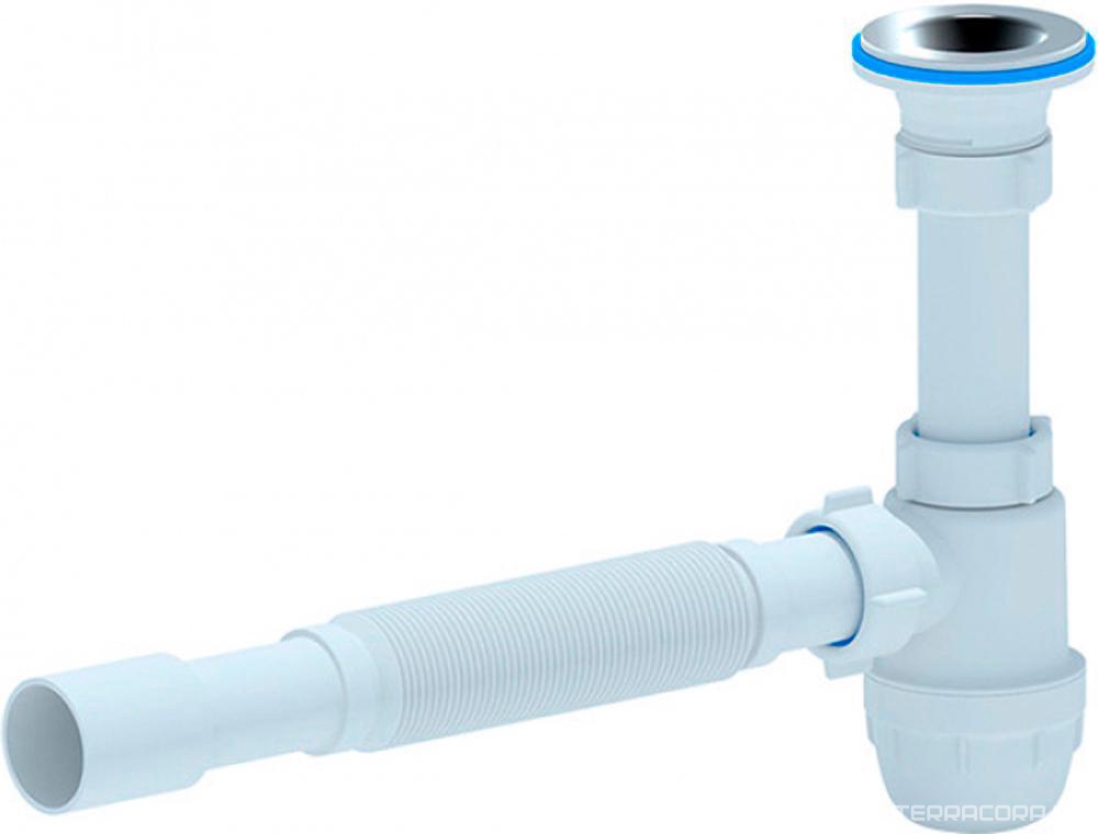Сифон для умыв. c нерж. сеткой и пробкой, выход d-40, жесткая подводка, отвод для стир.машиныВ наличии